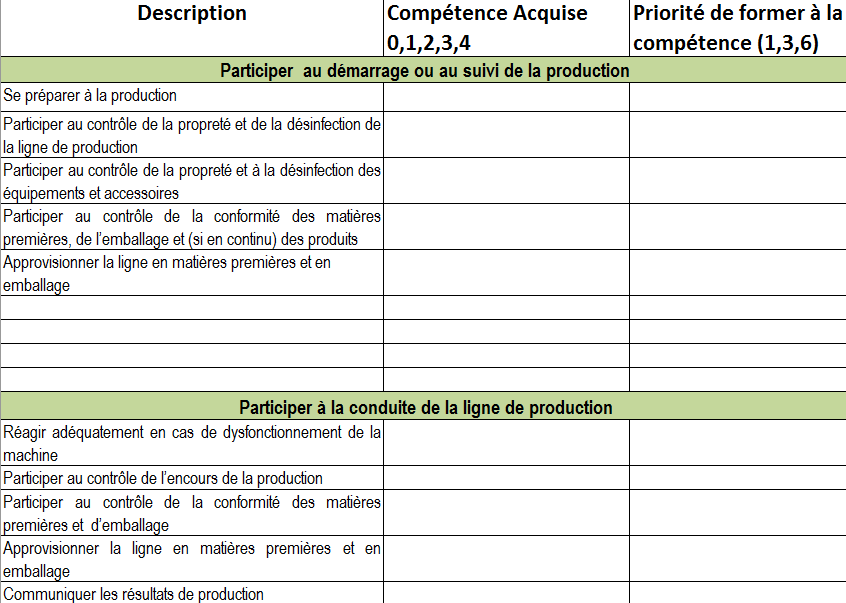 De taken en de competenties van eender welk beroep in de voedingsindustrie kan je met deze tool beheren, bijvoorbeeld van de afdelingen productie, onderhoud, logistiek, administratie, …