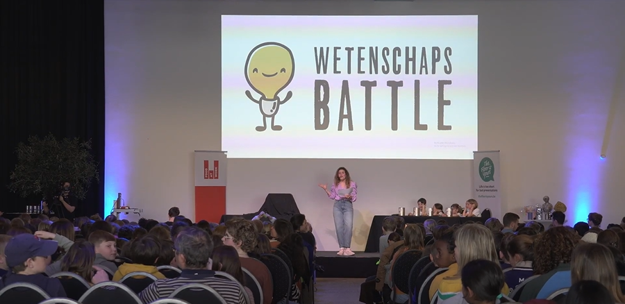 Op 23 maart vond er in Technopolis een ware wetenschapsbattle plaats. Kan je door de schil van een aardappel kijken? Spaghetti uit de 3D-printer? Vijf onderzoekers stelden hun onderzoek rond voeding aan een publiek nieuwsgierige lagereschoolkinderen voor. De boeiendste wetenschapper werd bekroond. 5.000 leerlingen volgden live vanuit de klas en brachten mee hun stem uit. De volledige show kan je hier bekijken.